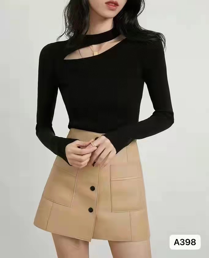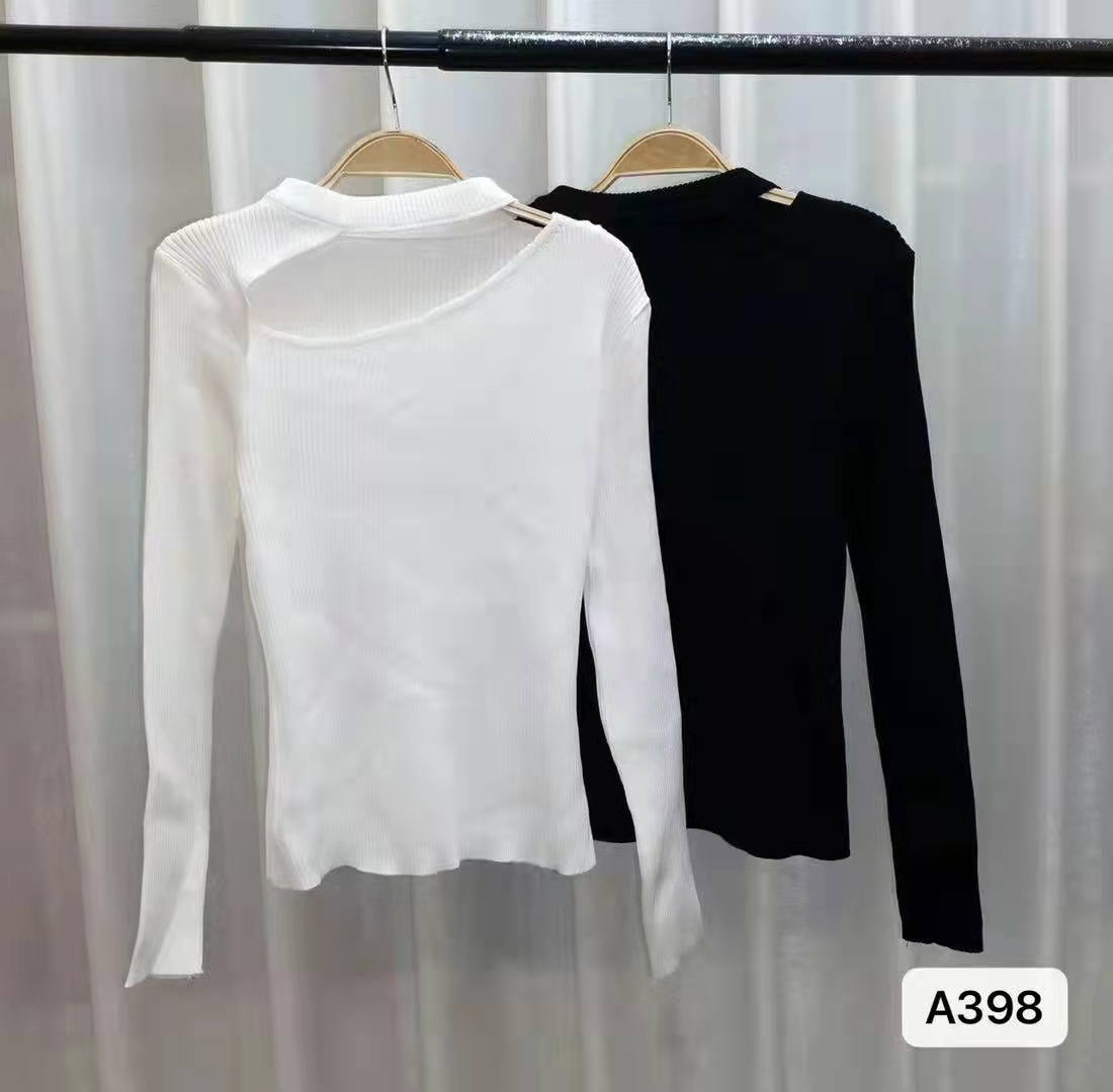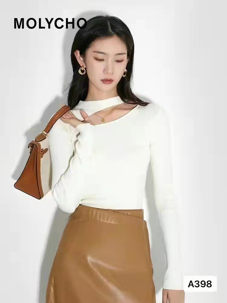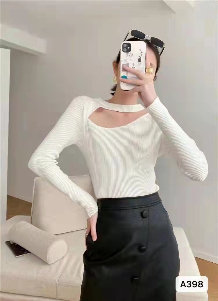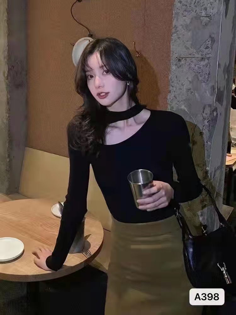 时尚锁骨镂空修身百搭长袖