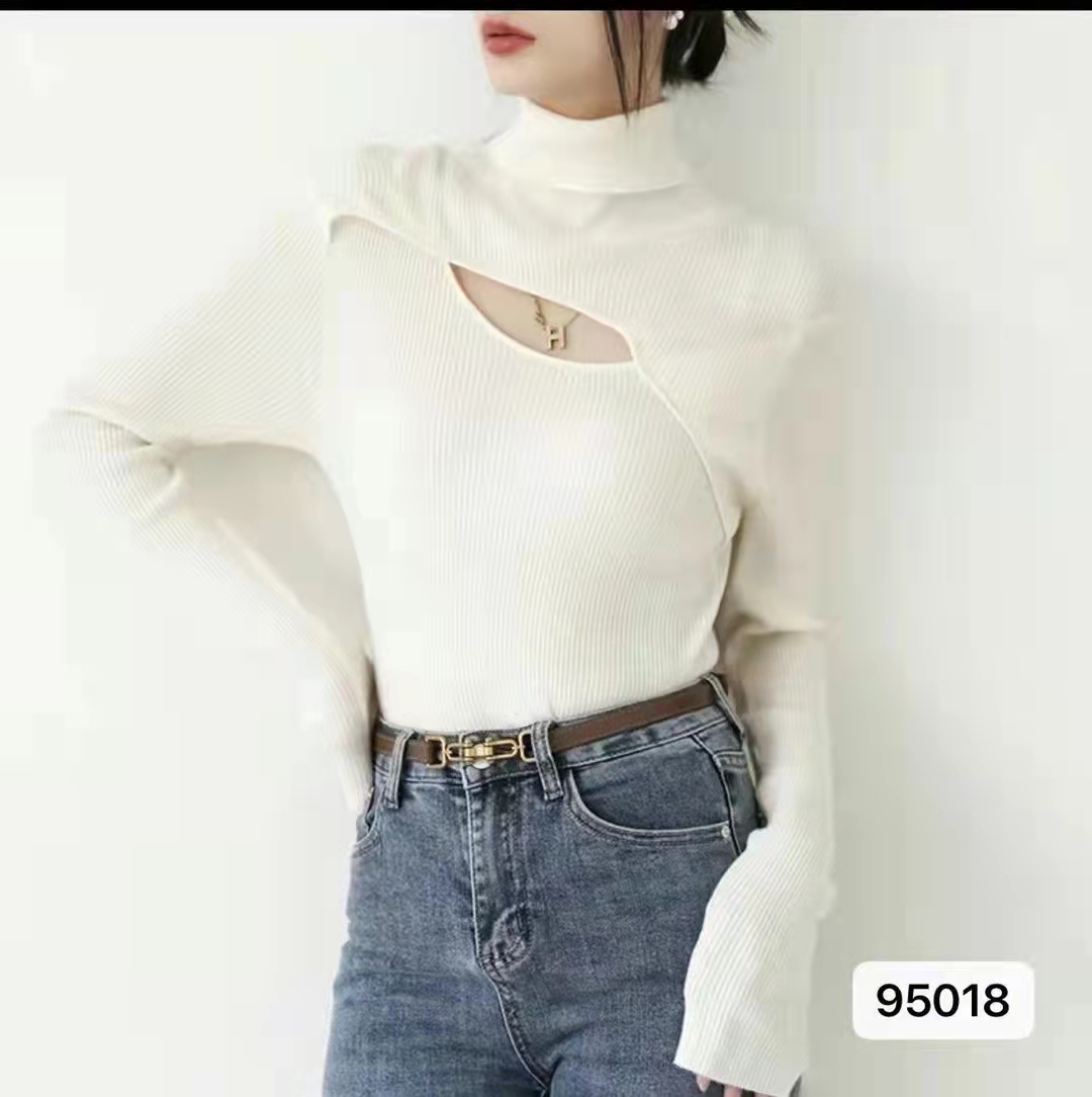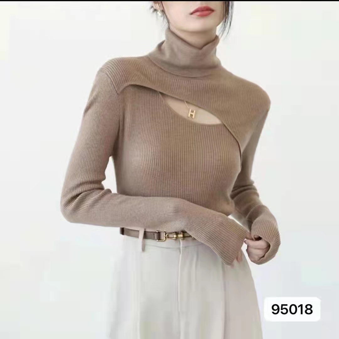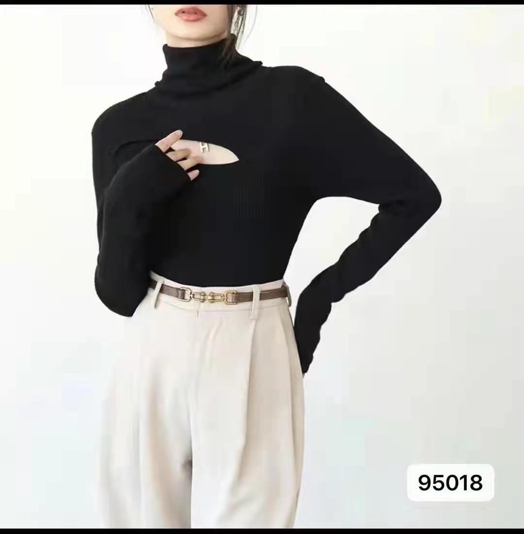 设计感高领镂空纯色百搭长袖