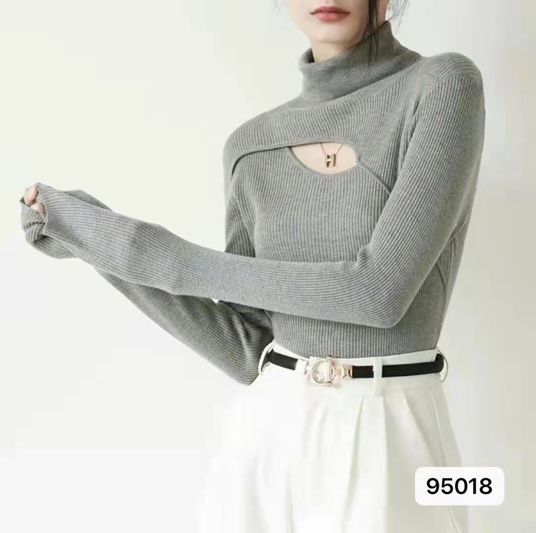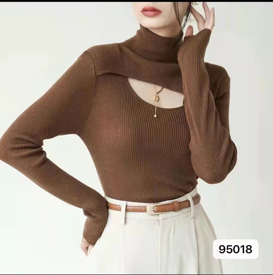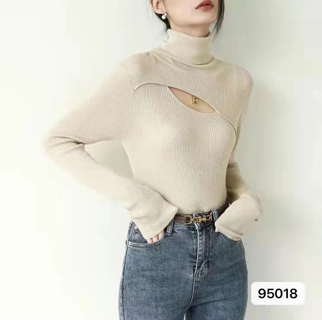 设计感高领镂空纯色百搭长袖
