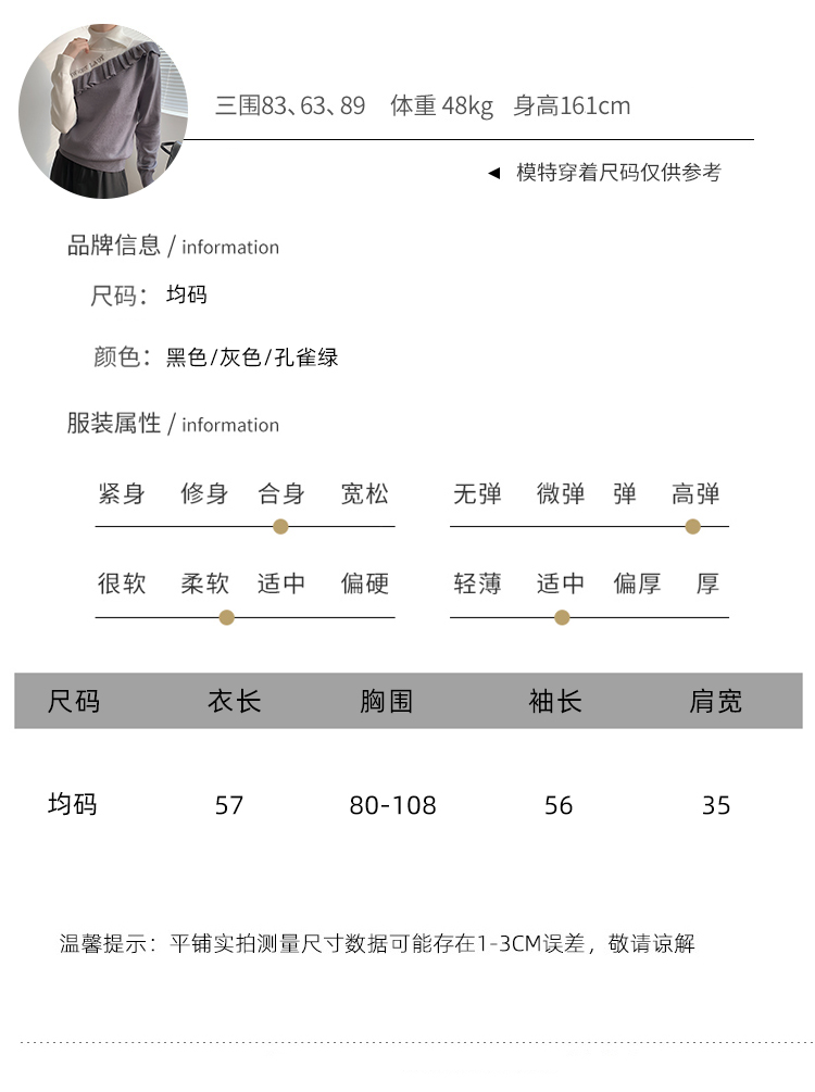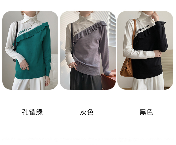1039新款长袖打底针织衫女韩版加厚荷叶边假两件高领毛衣