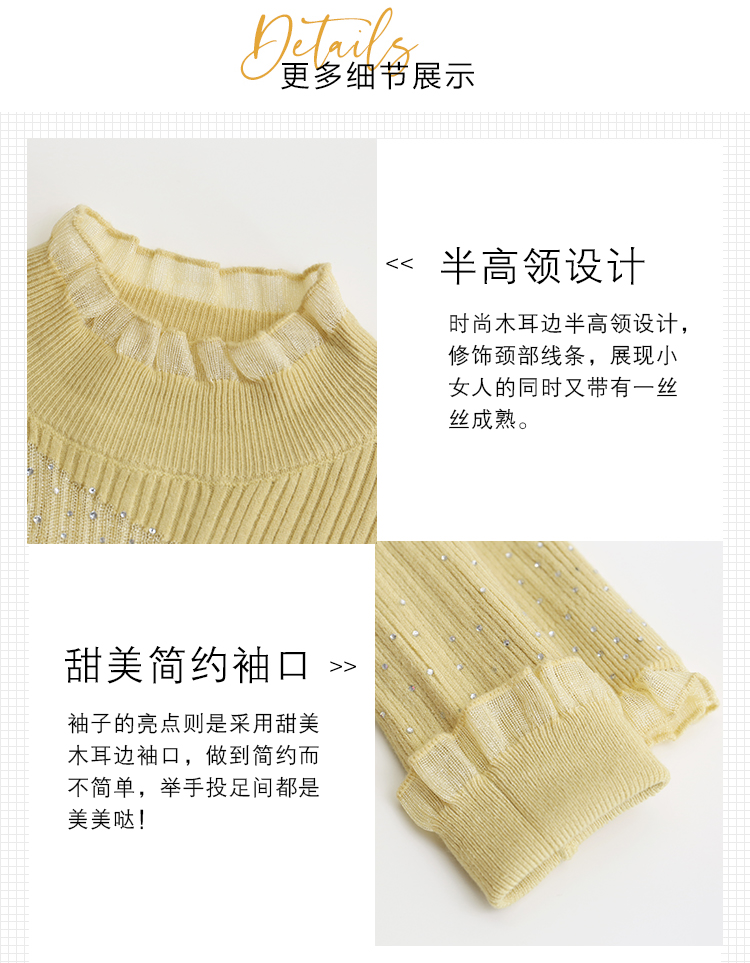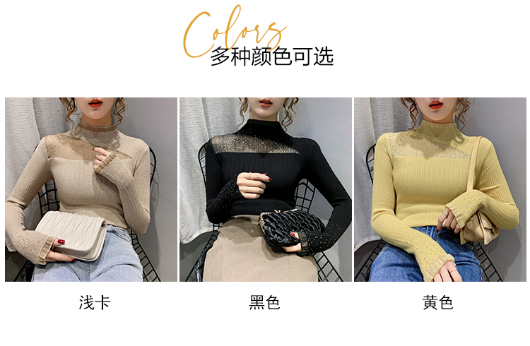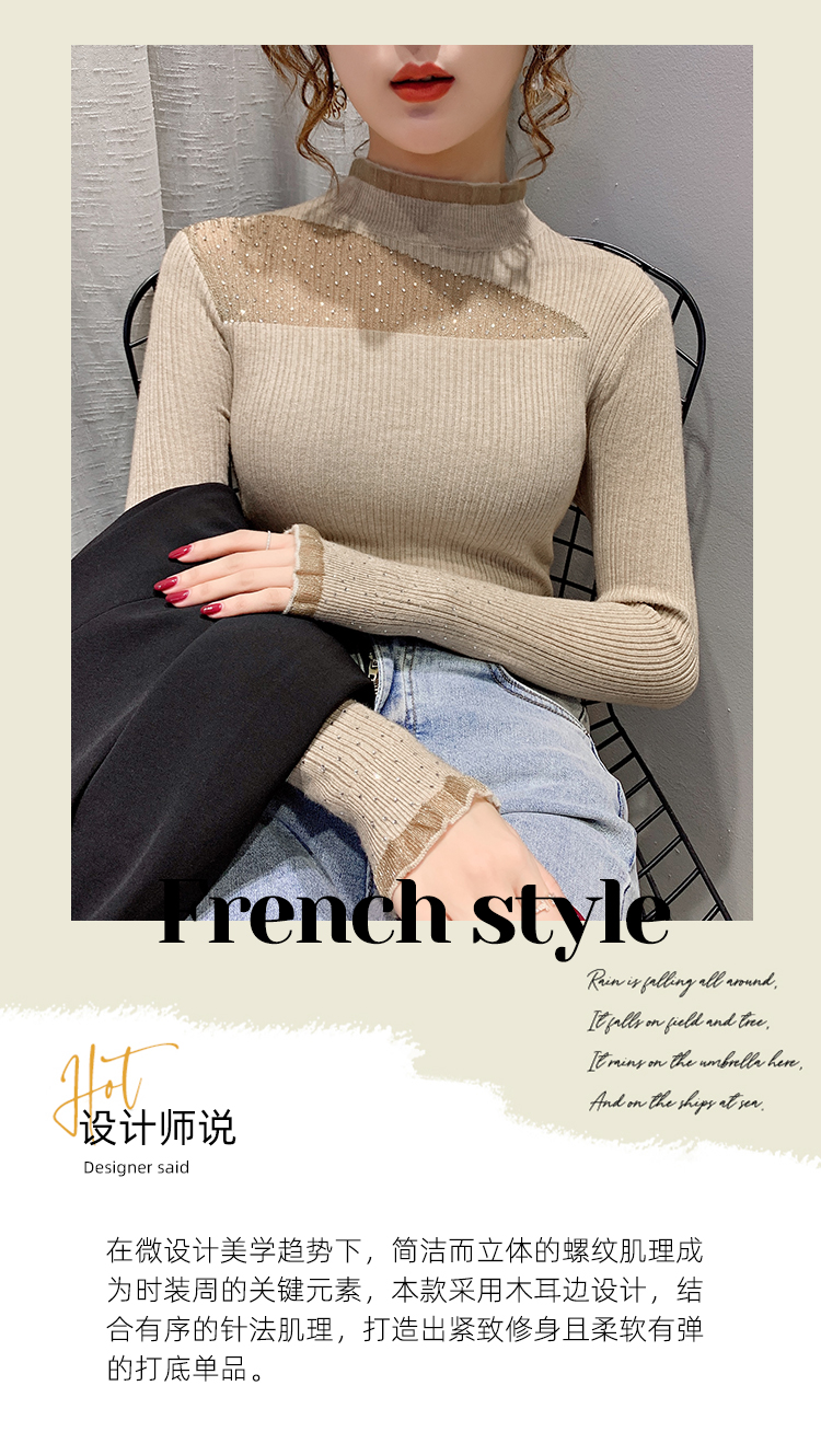 1086新款修身半高领内搭打底衫蕾丝长袖套头女士洋气针织衫