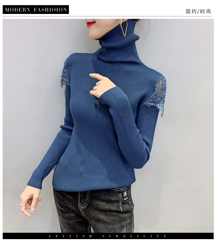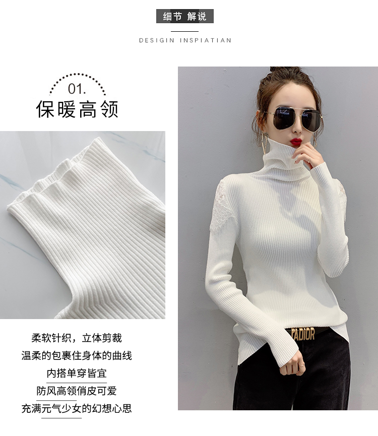 1242高领露肩毛衣女内搭蕾丝针织衫洋气上衣