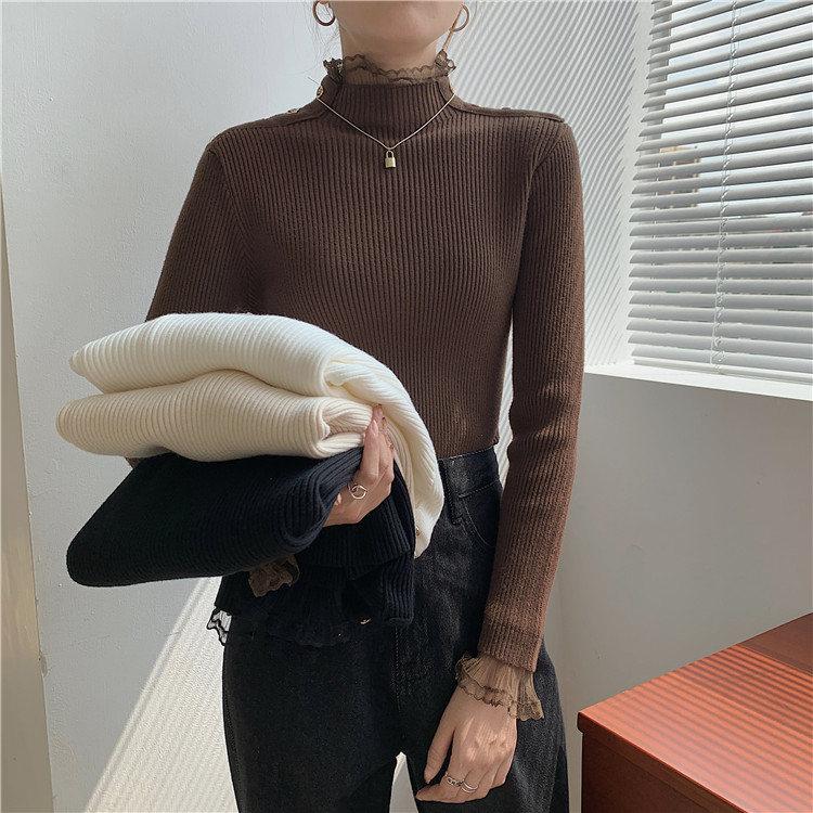 1243半高领蕾丝打底衫