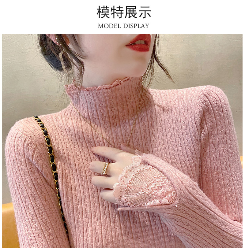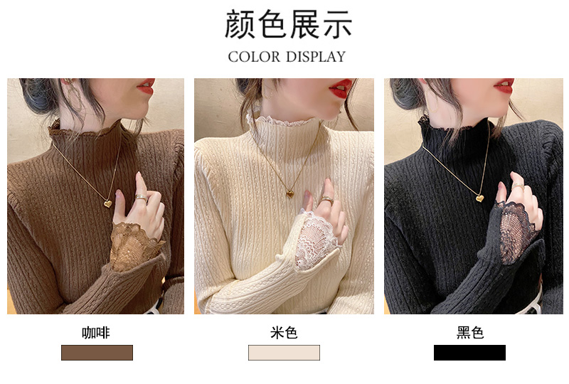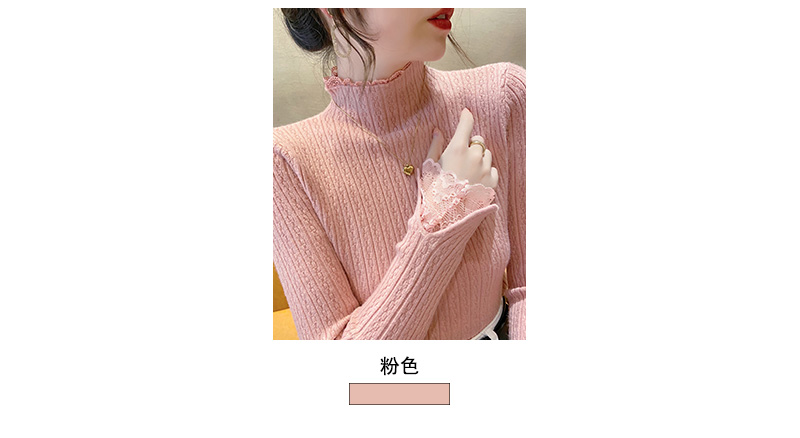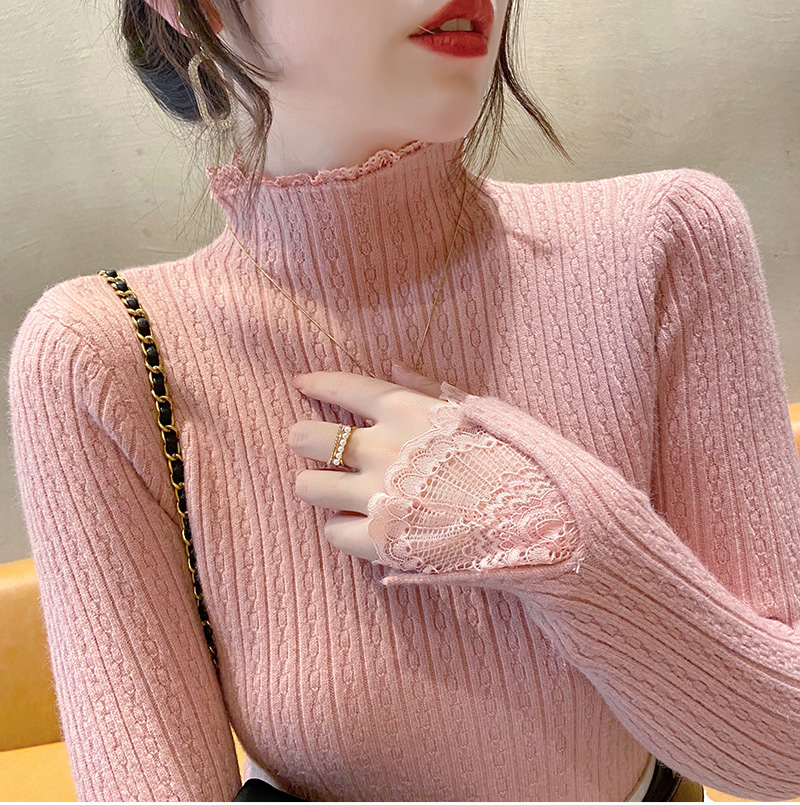 1246蕾丝打底衫新款麻花针织衫半高领修身毛衣