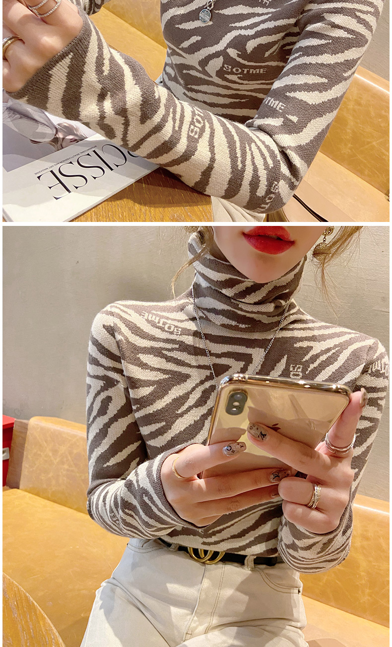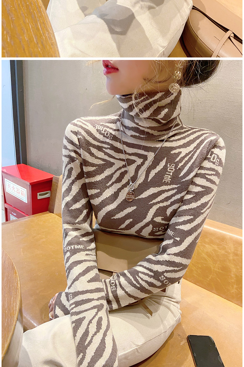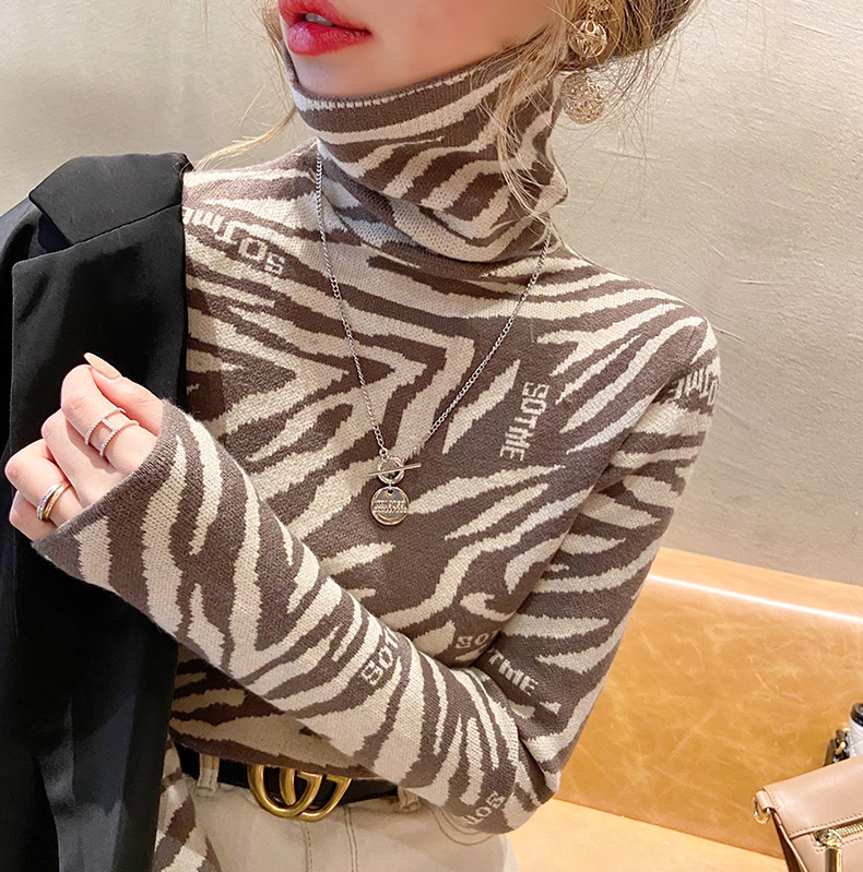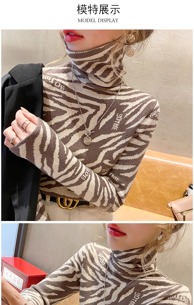 1357时尚豹纹洋气修身高领毛衣内搭